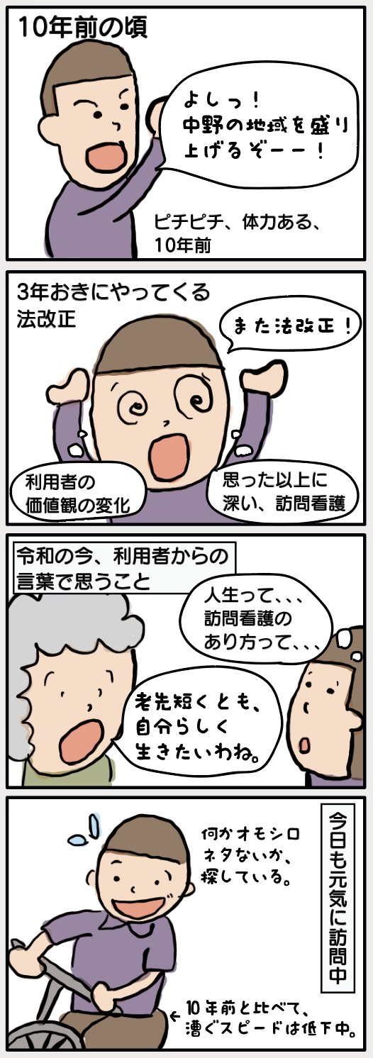 といながら今日も訪問を通じて利用者様の生きるに寄り添いながら、なんかオモシロネタはないかと、わるーい顔をして日々業務をおこなうのでありました。