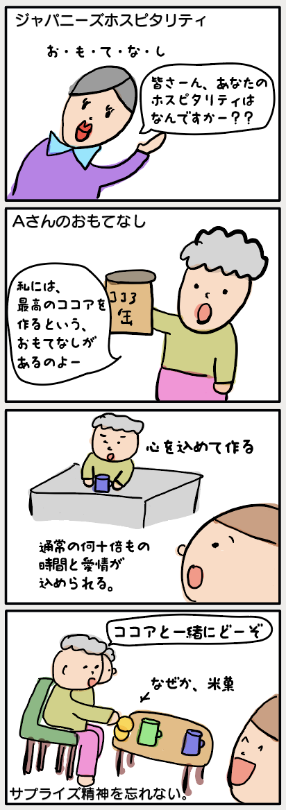 訪問4コマ漫画 ㊾「お、も、て、な、し。のココロ」